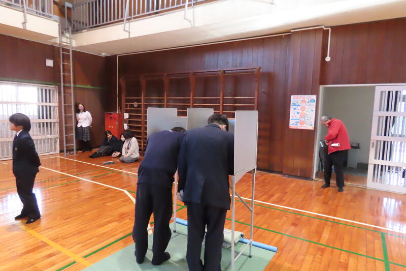 投票は山鹿市選挙管理委員会からお借りした器材を利用して、本当の選挙の手順に従って行いました。