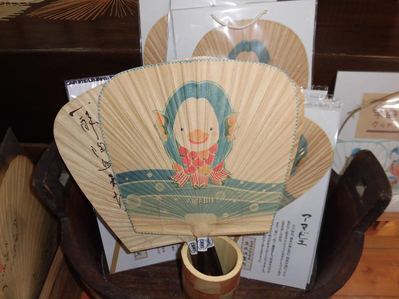 新型コロナ封じで流行中の妖怪「アマビエ」のうちわもありました。