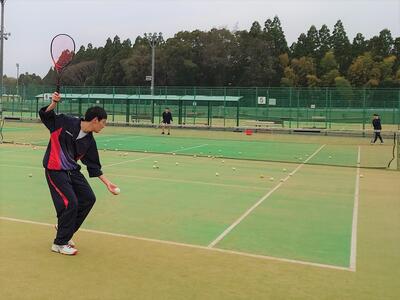 3月23、25日 山鹿カルチャーセンターテニスコートにて城北高校さんの練習に参加させていただきました。23日は小雨交じりの中でしたが、25日は快晴で桜も5分咲きくらいですが、きれいでした。25日は最後にゲームもでき、接戦の末に敗れましたが、4月にある大会に向けていい経験になりました。城北高校ソフトテニス部の皆さん、いつもありがとうございます。