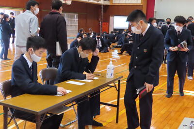 2学期期末考査最終日(12/6)の午後、新三部会(生徒会・農業クラブ・家庭クラブ)役員選挙の立会演説会及び投票を行いました。