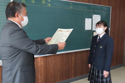 本日、校長室にて山鹿税務署長様から賞状の授与が行なわれました。