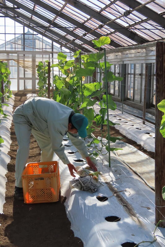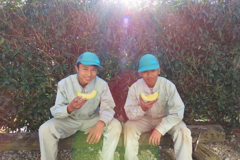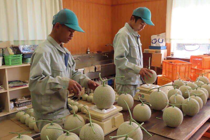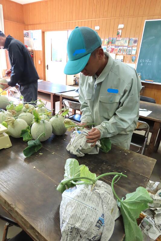 園芸技術科野菜専攻の生徒が管理しているメロンが収穫を迎えました。