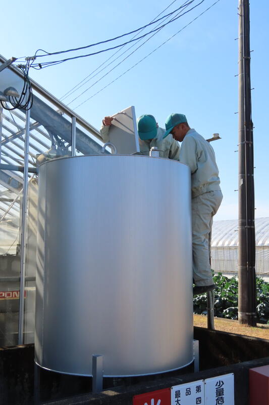 メロンのハウス内の温度を保つためにお世話になった重油貯蔵タンク内も見学。