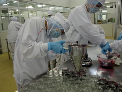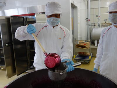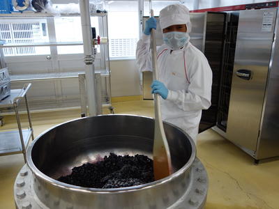 まずは自分たちで収穫したブルーベリーを二重釜で煮ていきます。