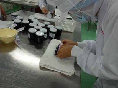 殺菌が終えたら取り出して製品庫へ一時保管します。