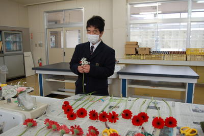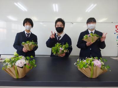 3学期:バレンタインアレンジ、卒業生のためのコサージュ作り