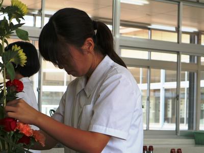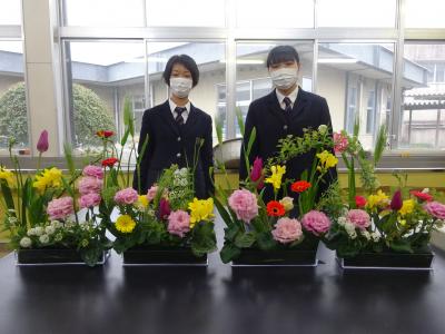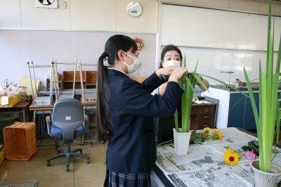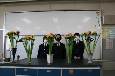 フラワーデザイン同好会は、外部講師の先生を迎え、季節に応じたテーマで、季節の花を使い、作品作りに取り組んでいます。