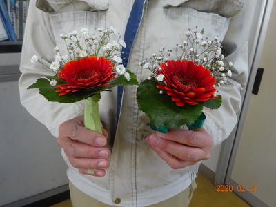 卒業式当日も、卒業生の胸元を鮮やかに飾ってくれました。