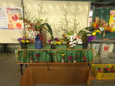 展示期間が一週間ほどの予定だったため、花材選びも考えてあります。個性豊かな作品が出そろいました。