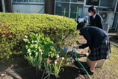 今日は水やりと草取りをした後に校内の花を使って花束を作りました。