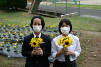 今日は隣のきれいな花壇からヒマワリを少しいただいて、事務室と保健室に飾らせていただきました。
