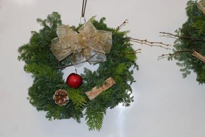 色の違うグリーンの葉をワイヤーで巻き付けて、ナチュラルおしゃれに仕上がりました。