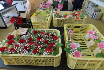 本番は1時間でなんとか全員分のコサージを完成させることが出来ました。