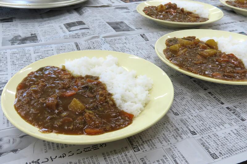 出来立てアツアツのカレーを頬張りながら、勢いよく食べ進む生徒たち。