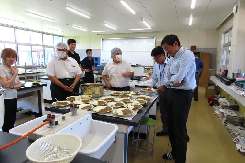 今回は、鹿農生が育てた野菜(ピーマン、オクラ、ナスなど)をたっぷり使って、園芸技術科の3年生がカレーライスを作ってくれました。