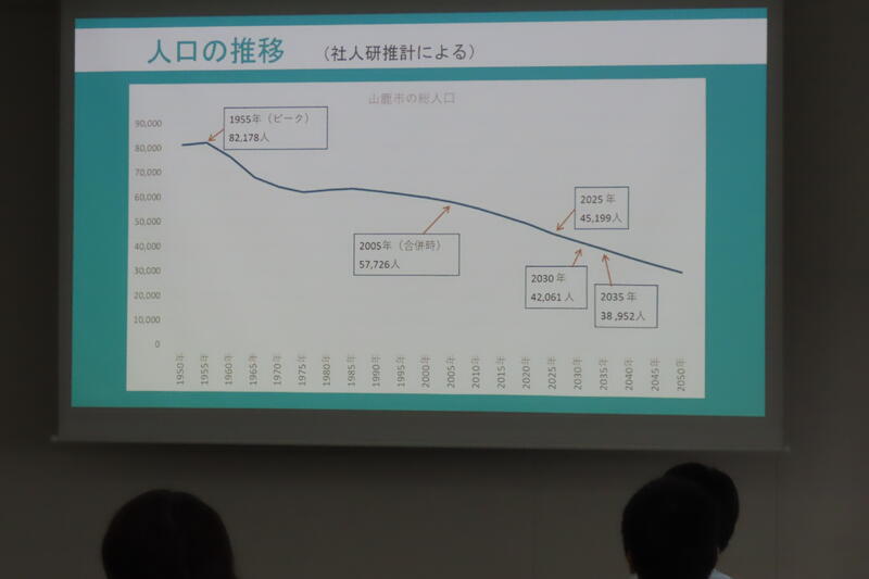 人口は、ピークの1955年は8万2千人から、現在は4万5千人、そして10年後は3万8千人と、ピーク時の半分以下になると予想されています