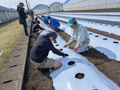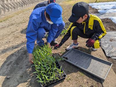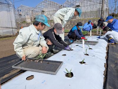 野菜専攻の生徒たちとジャガイモ、スイートコーンの植え付けを行いました。