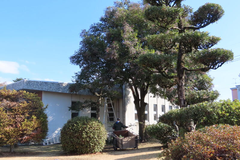 生徒が気持ちよく安全に登校できるように本校敷地内を整備される学校技師の先生方。