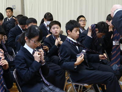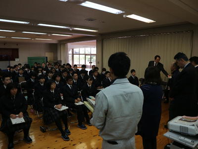 4月11日(木)、1年生は終日新入生研修でした。 <開講式> 教頭挨拶 「大リーグのイチロー選手のように、道具を大切にする姿勢を身に付けてほしい」 担任団紹介 1年生の担任・副担任の先生が、自己紹介をしました。 生徒代表挨拶 研修に臨む意気込みや姿勢について述べてくれました。 <研修①>教務主任講話 「教務部は皆さんの学習環境を整える係です」 成績や出席など、進級・卒業に関わる大切なことを話してくださいました。 生徒たちはとても集中して話を聞いてくれました。 また、熱心にメモを取る姿も印象的でした。 <研修②>生徒指導主事講話 「目標は、実社会に通用する力を身につけ、自立(律)する!です。そのためには・・・。」基本的な生活習慣を身につけるために大切なことについて話してくださいました。 <研修③>制服着用講座 制服の着こなしについて話があった後、ネクタイを結ぶ練習をしました。 この後は、農業クラブの入会式です。(続く) |