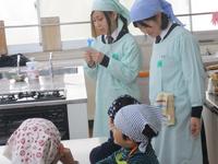今年のサツマイモは豊作で、アンノウイモ、パープルスイート、ベニハルカなど全部で7種類できました。 ということで、今年度もサツマイモを一緒に育てた大道保育園と生活科学科2年生がいきなり団子づくりに挑戦しました。 まず、園児さんが来る前にミーティング。 サツマイモも園児さんを待っています。 園児さんと挨拶をしたら、団子づくりのスタートです。 最初は、きれいに手を洗って。 早速、団子作り。真剣です。 団子こねこね。 個性的な団子ができそう。。。 団子を蒸す間に、生活科学科3年生のお姉さんが、自分で全て製作したエプロンシアターを披露してくれました。 指遊びのあと、「赤ずきんちゃん」。 大丈夫かな、赤ずきんちゃん。話の中にみんな入っています。 いつの間にか、団子もできましたよ。 おいしく食べたら、もう、お別れ。 離れがたいけれど、またいつか会える日を楽しみにしています。大道保育園の年長児さん、楽しい時間をありがとうございました!!