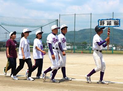 午後のプログラムのスタートです。 プログラムNo.13 部紹介行進・部対抗リレー <部紹介行進> 野球部 サッカー部 陸上競技部 ソフトテニス部 パフォーマンス付きでした。 柔道部 卓球部 バドミントン部 バスケットボール部 パフォーマンス付きです。 郷土芸能伝承部 食品加工部 茶道部 調理部 百人一首部 フラワーアレンジ同好会 イラスト同好会 <部対抗リレー> パフォーマンスの部 優勝は野球部でした。