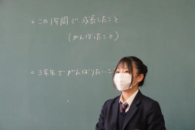 今年度最後のホームルームでは、生徒一人一人が「この1年間で成長したこと(がんばったこと)」「来年度がんばりたいこと」をスピーチしているクラスもありました。