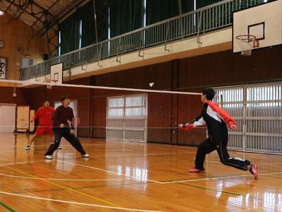 寒い寒い体育館ですが、生徒たちは部活動に励んでいます。 フットワークの強化 前後左右にあげられるシャトルを必死になって追いかけます ダブルスのポジショニングの確認 攻撃の時は縦 守りの時は横 これが基本。反復練習で動きを体で覚えます。 攻撃の時は縦 守りの時は横 最後はゲームです。 引退した3年生も来てくれ、充実した練習となりました。 ちなみに3年生は、久しぶりの練習でバテバテ。試合終了後は倒れこんでしまいました(笑)。 |