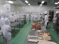 高松先生からフランスパンの基礎的な知識や技術に関する説明をしていただいた後、今回は明太子フランスパンとベーコンエピ作りを行いましたパンの形を作る成形が難しく高松先生に教えて頂きながら頑張っていました