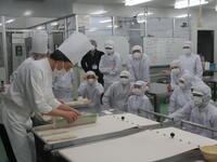 食品科学科2年生を対象にものづくりマイスター講習会を実施しました内容はフランスパンです。講師に熊本県職業能力開発協会「厚生労働省認定・ものづくりマイスター」の高松良輔先生に来校して頂きました(昨年9月にも菓子パン講習会の講師として来校して頂いています)