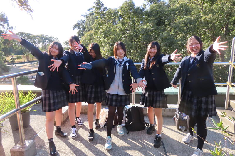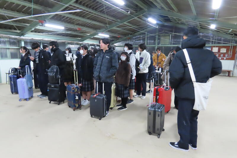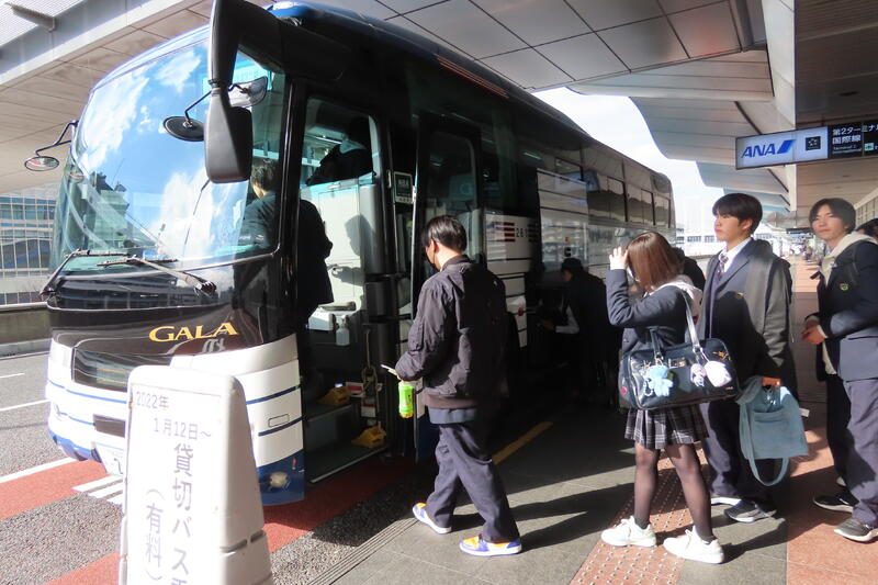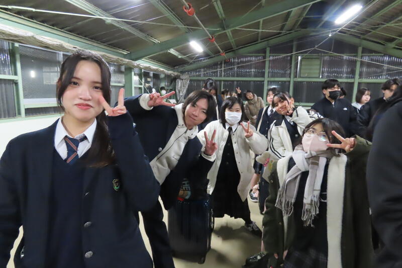 6時にはすでに学校に到着している生徒もおり、6時半には生徒全員が揃うことができました。出発式がグリーンハウス内で行われ、次期家庭クラブ会長が生徒代表で挨拶をしました。7時前に学校を出発し、朝焼けを眺めながら空港に向かいました。真っ暗な寒い中、送迎やお見送り、ありがとうございました!行ってきます