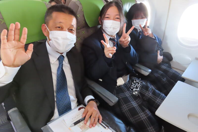 途中、富士山が見えたので左側座席の生徒はラッキーでしたね