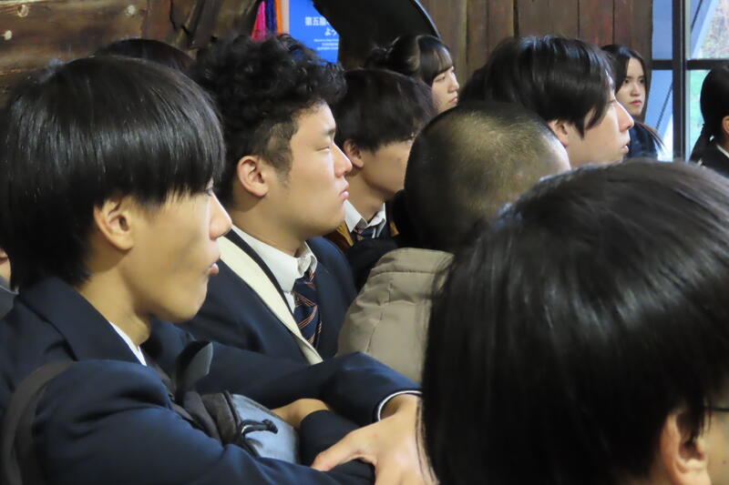 現存する第五福竜丸の迫力にただただ圧倒されました。それまで元気いっぱい笑顔いっぱいの生徒たちが一変し、真剣な眼差しで担当者の方のお話に耳を傾け、展示品や資料に見入っていました。終了後、バスガイドさんがバスの中で何気なく言われた「後世に語り伝えることが大切です」という言葉は広島・長崎・第五福竜丸を知る私達が心に留めて置きたい言葉だと思いました。