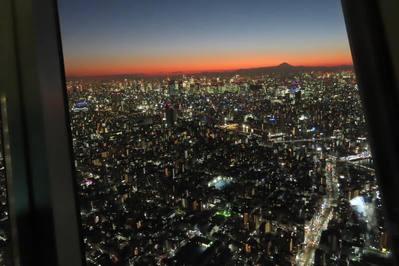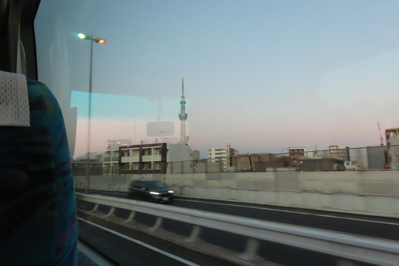 車内からも幾度となく見えては消え、見えては消えたスカイツリー。ようやく目の前に現れ、入ることができました!渋滞で到着が遅れてしまったものの、タイムリーなことに夕暮れ時の最も美しい時間帯の景色を私達は目にすることができました。一生の宝物になりましたね