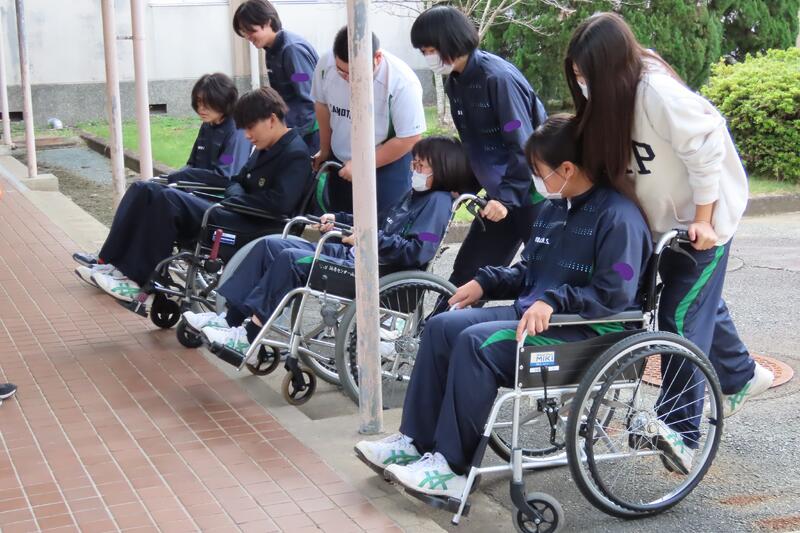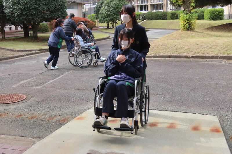 車いす体験では、スロープや段差の上り下りを体験しました。