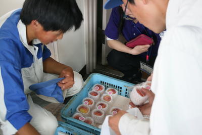 今年初めての桃(ふくおとめ)を施設園芸科で収穫し、販売しました。 |