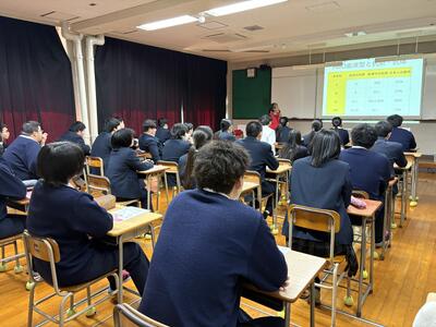 3年生を対象に熊本県赤十字血液センターから薬剤師の方にご来校いただき、「献血セミナー」が開催されました。