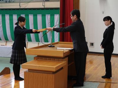 校内表彰 3年間皆勤賞(10人受賞しました) |