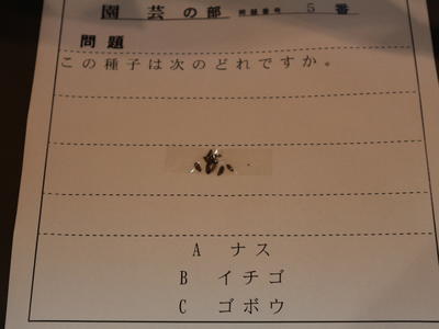 校内農業鑑定競技会を開催しました。この競技会は来年度の県大会出場者を決める校内選考会を兼ねています。 施設園芸科とバイオ工学科は園芸の部に、食品工業科は食品科学の部に、生活科学科は生活科学の部にそれぞれエントリー。 問題は1・2年生共通で40問あり、1番~38番までは20秒、39番と40番は40秒で解答します。 <施設園芸科>園芸の部 2年生 1年生 問題例 <食品工業科>食品科学の部 2年生 1年生 問題例 |