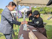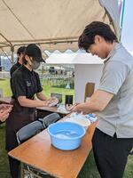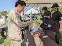 鹿本農業高校の食品加工部も参加をし、和紅茶石鹸の実演と販売を行いました