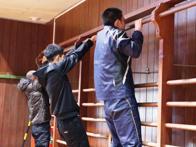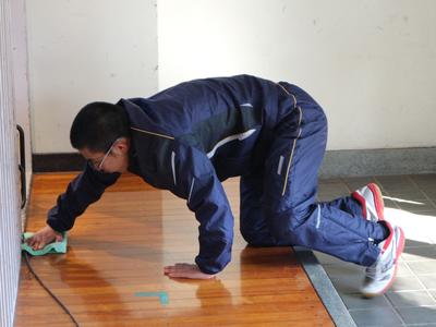 練習の後は、1年間の感謝を込めて体育館の掃除を行いました。