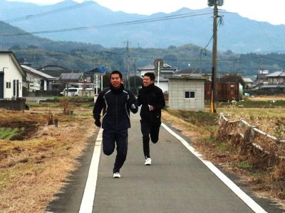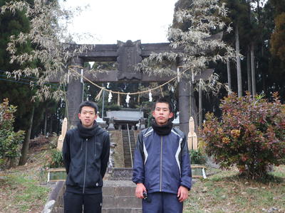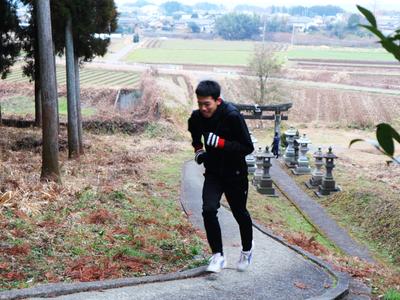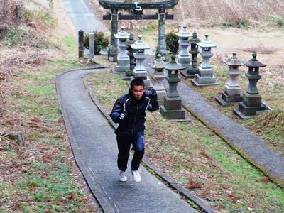 神社には坂道の参道もあります。そこで参拝後に坂道ダッシュを行い、2人の頑張りを神様に見ていただくことにしました。