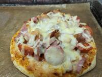 材料を準備し、生地をこね上げます。生地をねかせている間にトッピングを準備しました。