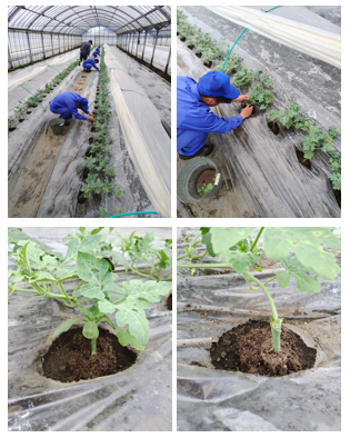 スイカの子葉と株元のわき芽を切除しました。