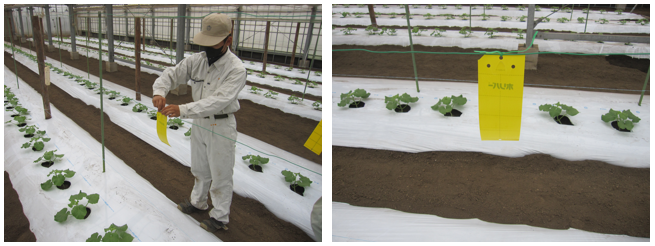 害虫の早期発見が出来るように粘着性のあるトラップを設置しました。