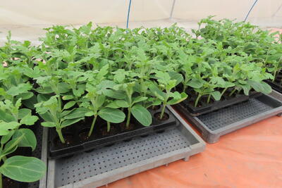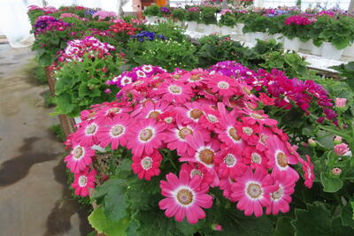 「草花専攻」の温室を覗いてみると、 12月に定植したサイネリアが少しずつ開花していました。