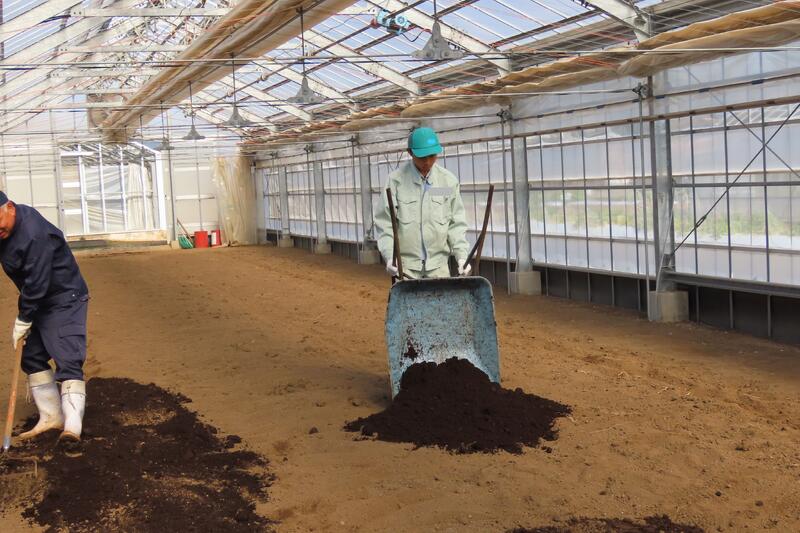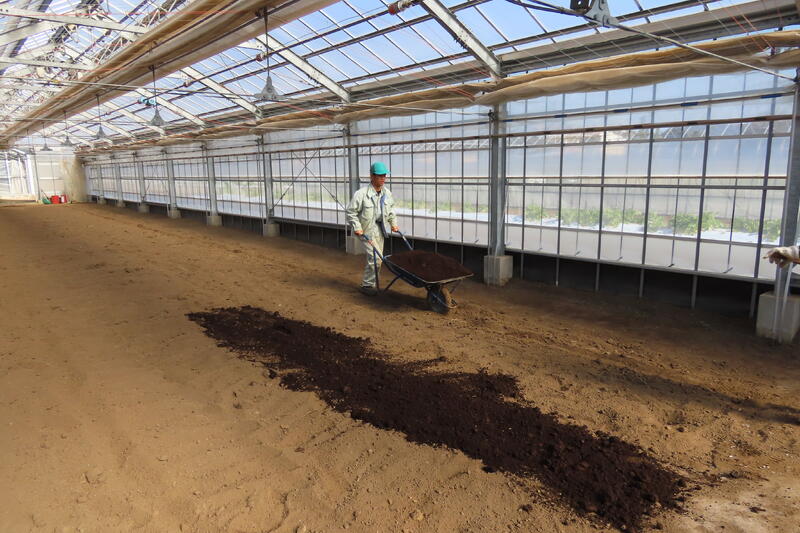 【野菜専攻】ハウス内へ春作メロン用の堆肥搬入・散布