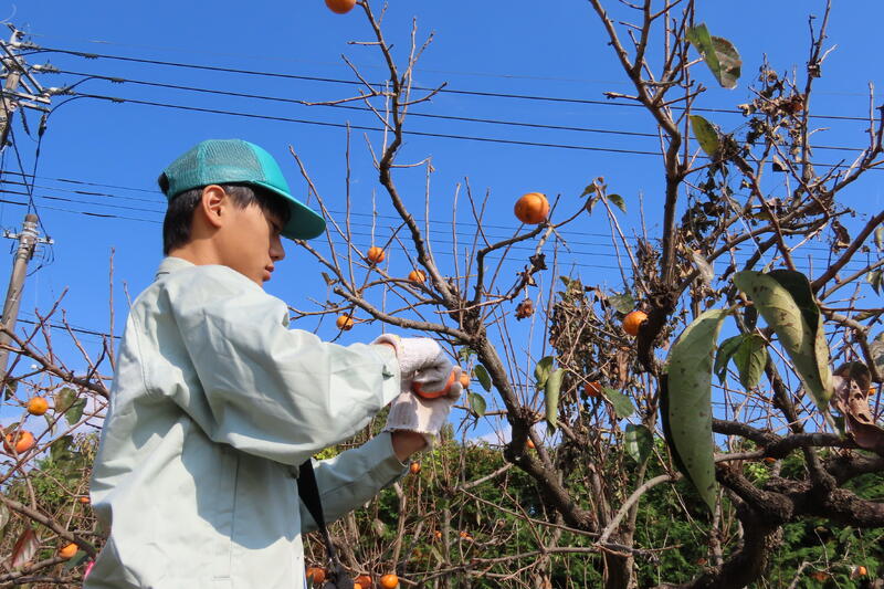 2年生園芸技術科の野菜専攻、果樹専攻の生徒が、野菜と柿の収穫実習をしていました。