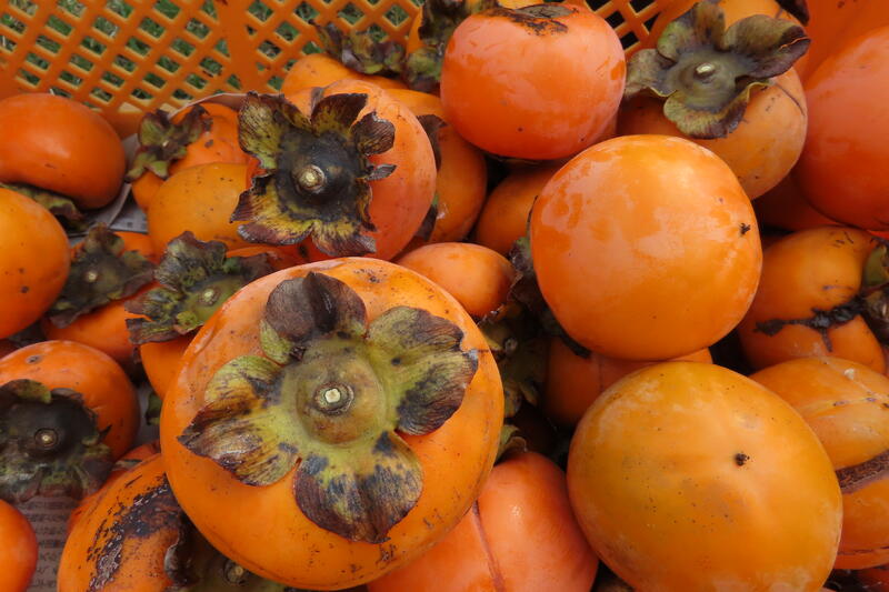 収穫を進めていると、鳥が食べた痕跡のある柿を発見