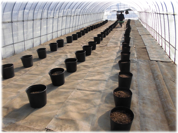ハウス内に73ポット設置完了ヽ(^o^)丿