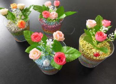 今回造花を使用しましたが、発根した植物を植えて水を張れば 水耕栽培が可能です。(※水耕栽培に向かない植物もあります)